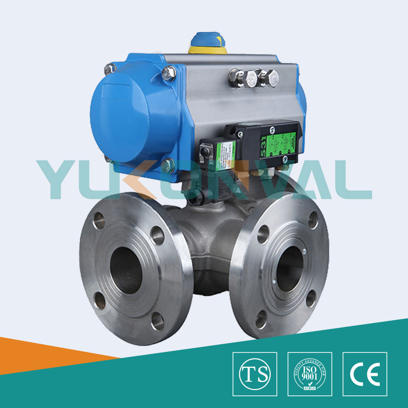 氣動三通球閥是一種三通道的回轉型球閥, 用于介質分流、合流及流向切換,任何一個管道都可以作為入口或出口。氣動三通球閥分有氣動三通L型球閥和氣動三通T型球閥兩種,可以滿足不同的生產工藝要求。氣動三通L型球閥是對三條管道中的兩條管道進行切斷,氣動三通T型球閥實現把三條連通管道進行合流與分流。氣動三通調節球閥與電氣閥門定位器配套,輸入4~20mADC信號及0.4~0.7MPa氣源即可控制運轉,實現對壓力、流量、溫度、液位等參數的調節。氣動三通換向球閥配行程限位開關、電磁閥、減壓閥及0.4-0.7MPa氣源可實現開關操作,并送出二對無源觸點信號指示閥門的開關。氣動三通球閥廣泛應用于化工,石油,輕紡,電力,食品制藥,制冷,航空,航天,造紙等工業領域。